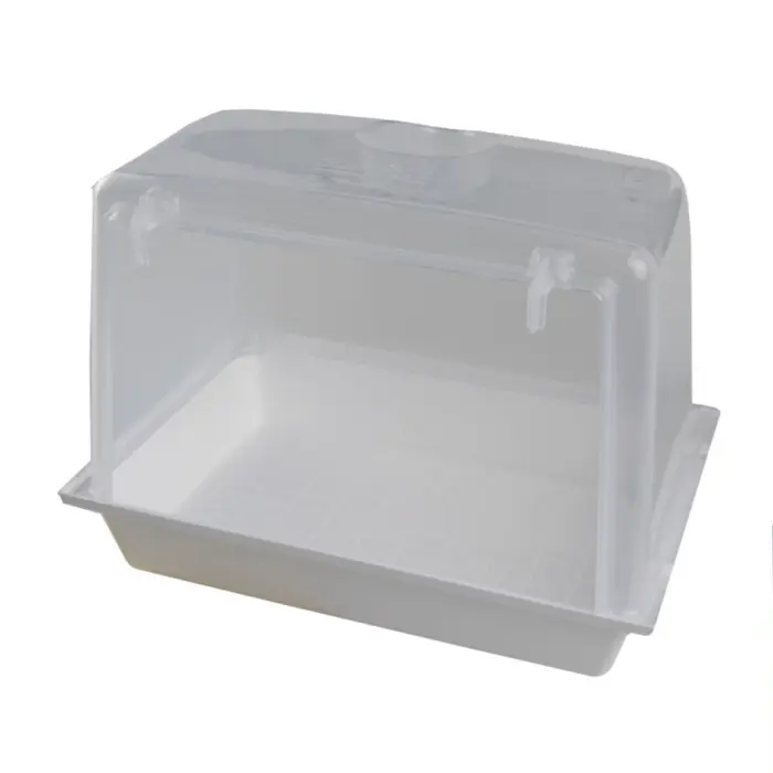 Kattlåda med kolfilter, svängdörr och avtagbart lock. Rymlig modell i återvunnen plast. Lätt att rengöra. Längd: 56 cm.