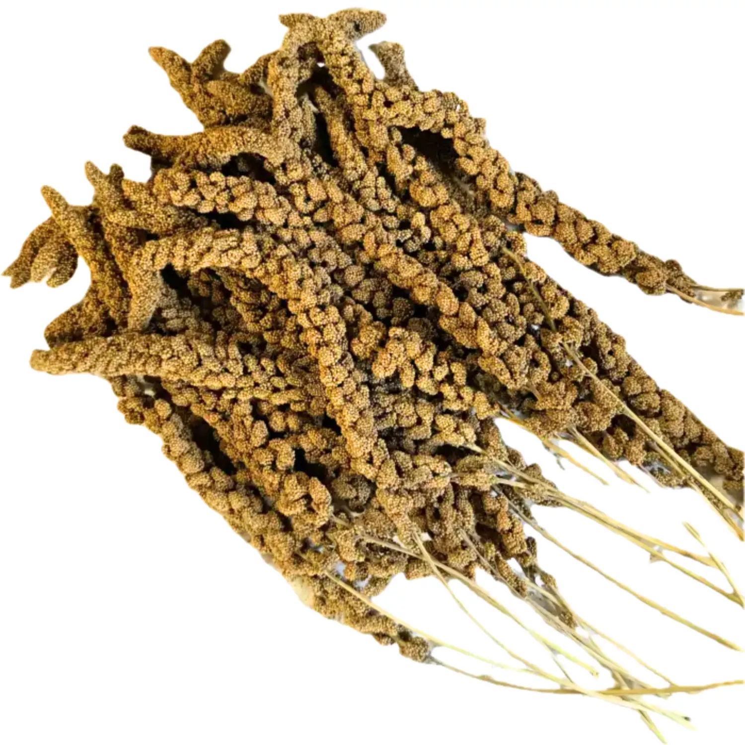 Extra stora, vackert gula hirskolvar av fin fransk kvalitet. Dessa kolvar är mycket populära bland både småfåglar och större papegojor – inte bara som mat, utan också som en naturlig sysselsättning som aktiverar fågeln.