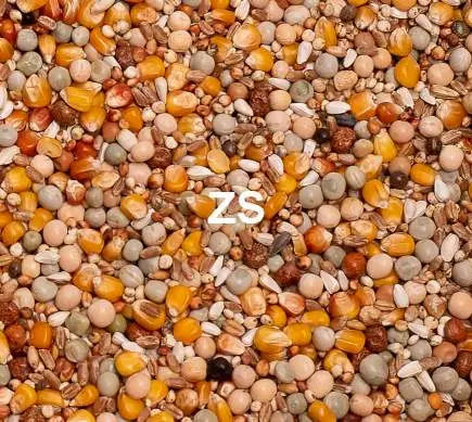 Sammansättning Cribbs majs - vete - gröna ärtor - gula ärtor - vit dari - röd durra - safflor - lönnärter - meranomajs - platamajs - dunärter - små gröna ärtor - vicker - fångare (trappers)