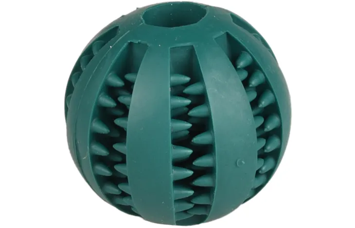 Denna robusta hundboll i slitstarkt gummi är framtagen för att kombinera lek och tandvård. Med sina flexibla piggar masserar den tandköttet och hjälper till att avlägsna plack när hunden tuggar på den. Den inbyggda mintsmaken ger dessutom en fräsch andedräkt.