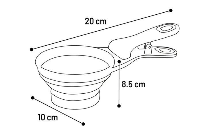 Väg och dosera foder enkelt med digital vågskopa. Visar vikt i 5 enheter. Löstagbart handtag. Diskmaskinsäker. Batteri CR2032 (ingår ej).