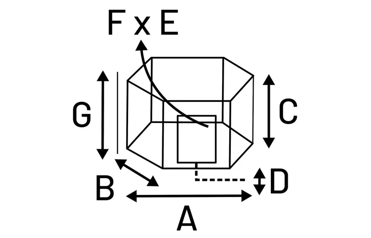 Hagens totala mått är A: 100 cm (längd), B: 60 cm (höjd) och C: 60 cm (djup). Trådtjocklek: 2,9 / 2 mm, avstånd mellan trådar: 25 mm.