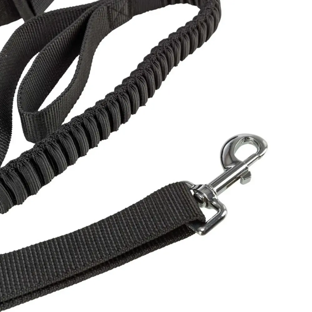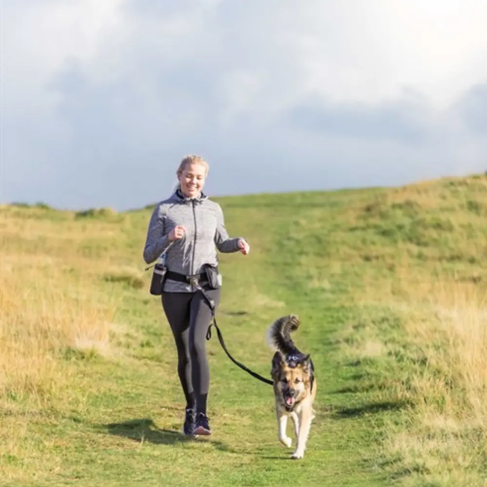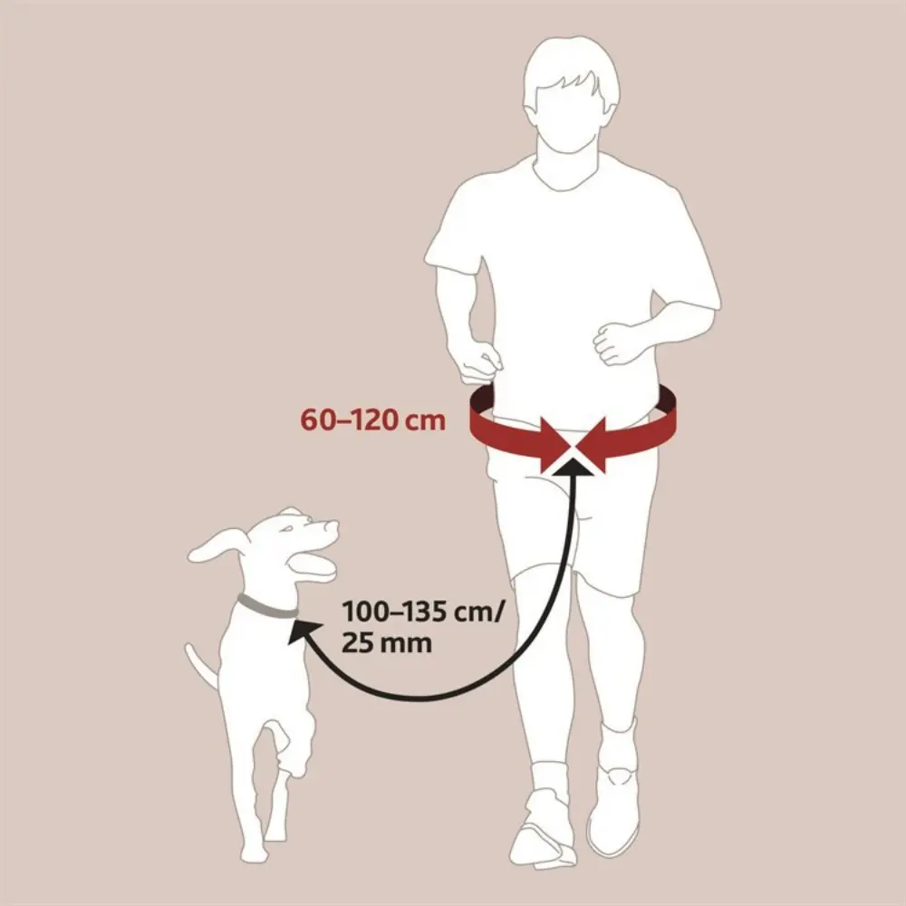 Praktiskt handsfreebälte med expanderkoppel och reflexdetaljer för aktiv hundträning