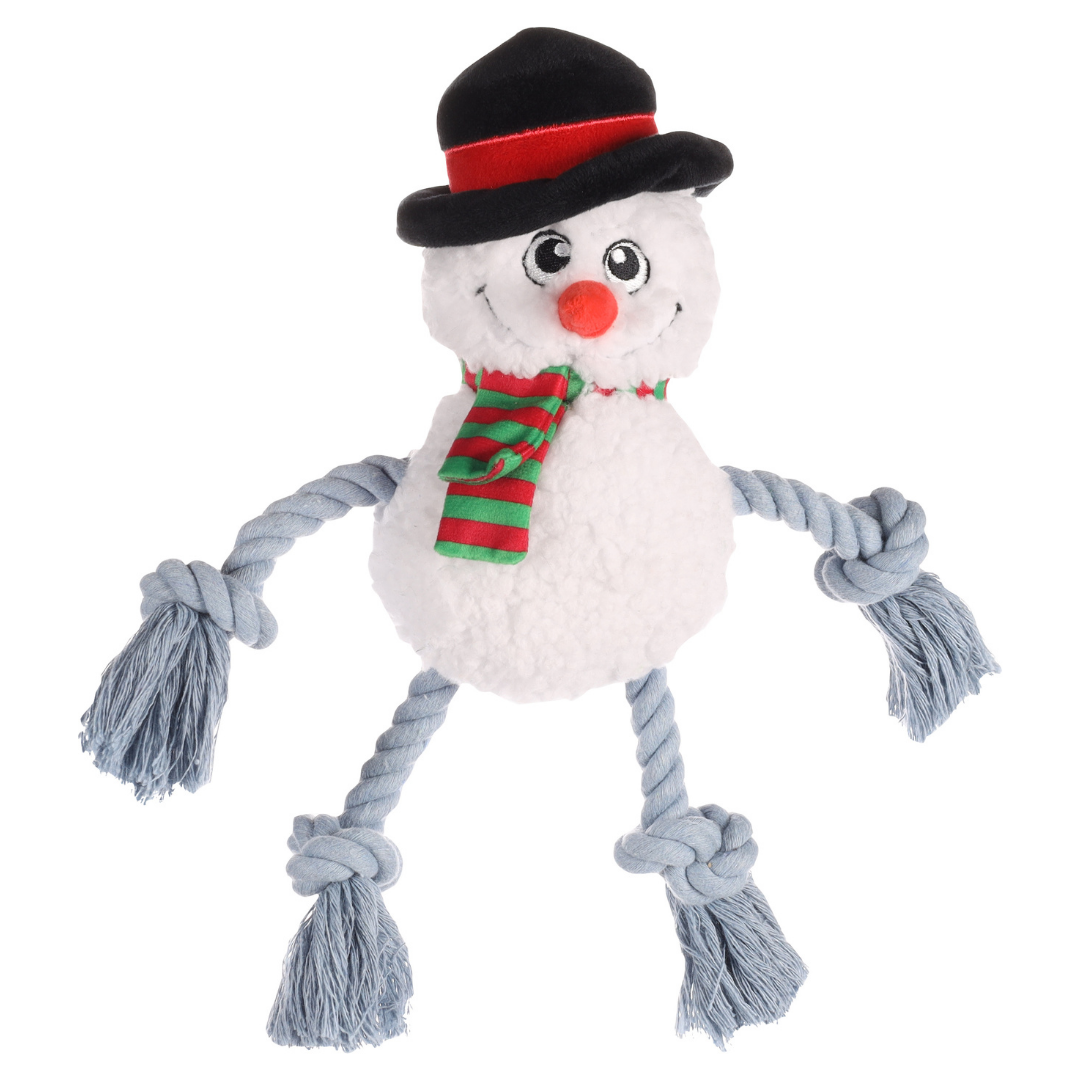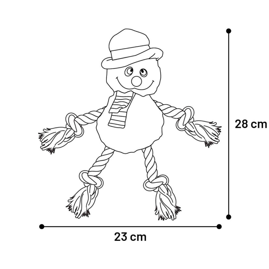 En söt och vintervit julleksak i form av en snögubbe som sprider julstämning även till hunden. Tillverkad i mjuk plysch med rörliga armar och ben samt inbyggd pip som väcker lekglädje. Den charmiga designen och hållbara kvaliteten gör den snabbt till en favorit under juldagarna. Rekommenderas för inomhuslek och bör användas under uppsikt.