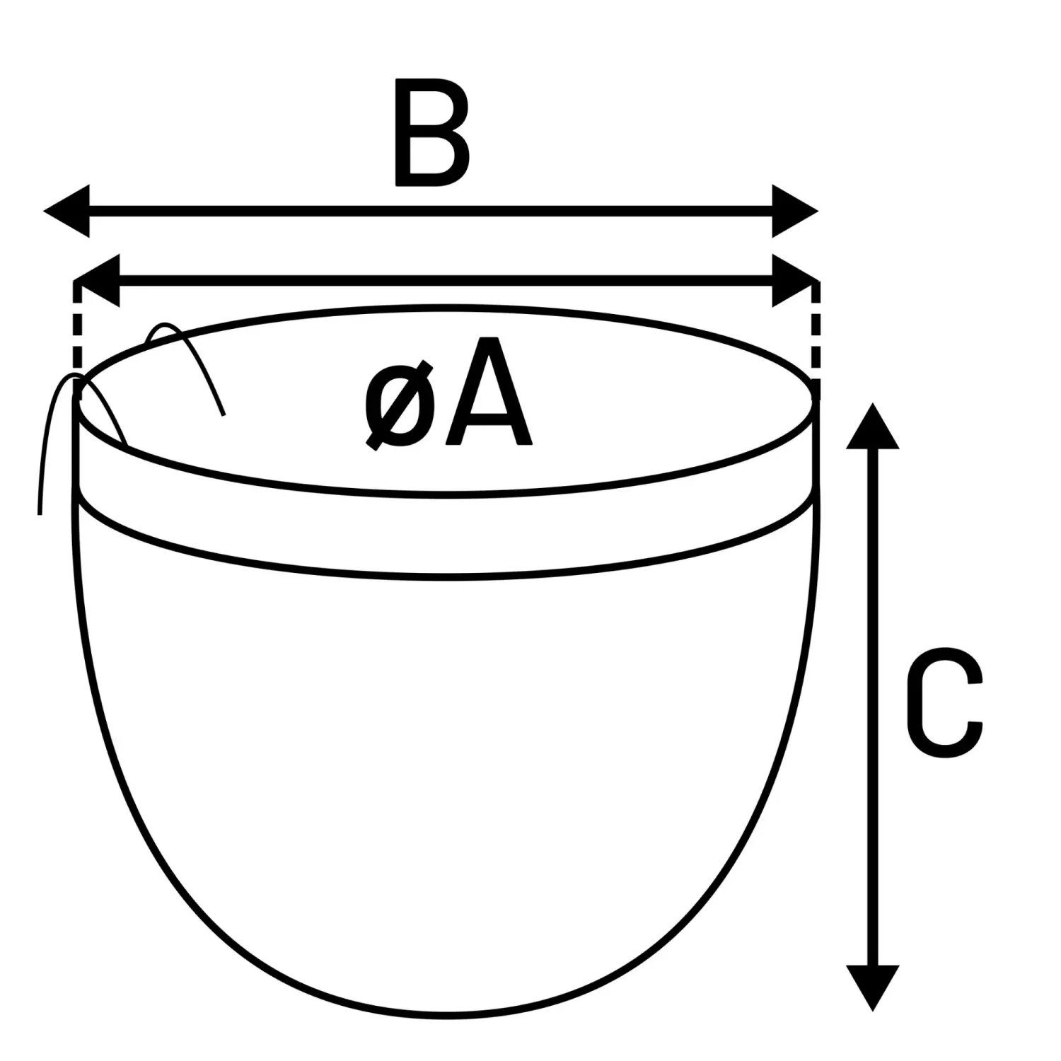 L: 15 cm, A: ∅ 15 cm, B 15 cm, C: H 8,5 cm