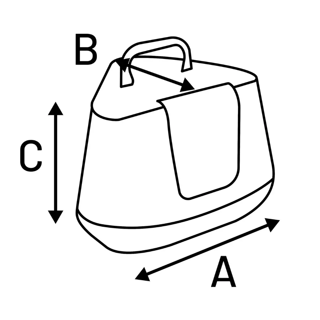 Mått: 45 cm lång (A), 56 cm bred (B), 37 cm hög (C).