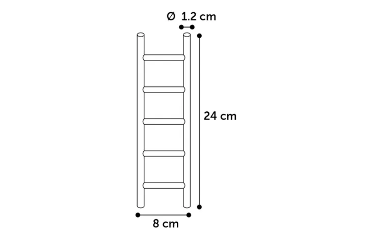 Denna klassiska trästege är en uppskattad leksak för undulater och andra små burfåglar. Stegen ger fågeln möjlighet att klättra och röra sig naturligt i buren, vilket främjar både fysisk aktivitet och nyfikenhet. Den är tillverkad i obehandlat trä med rundade pinnar och hängs enkelt upp med metallkrokar.