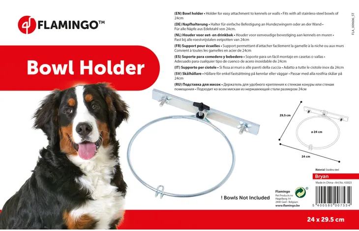 En praktisk hållare som låter dig montera en matskål på väggen eller i buren, vilket skapar en ren och organiserad matplats för ditt husdjur. Passar skålar med en diameter på 24 cm och en kapacitet på 2,5 liter. Den upphöjda kanten håller skålen på plats och förhindrar spill, samtidigt som hållaren är enkel att montera med det robusta fästsystemet. Perfekt för att undvika stök och hålla skålen stabil oavsett om den används i bur, kennel eller på väggen. Observera att skål inte ingår och behöver köpas separat. Tillverkad i rostfritt stål för lång hållbarhet och hygien.