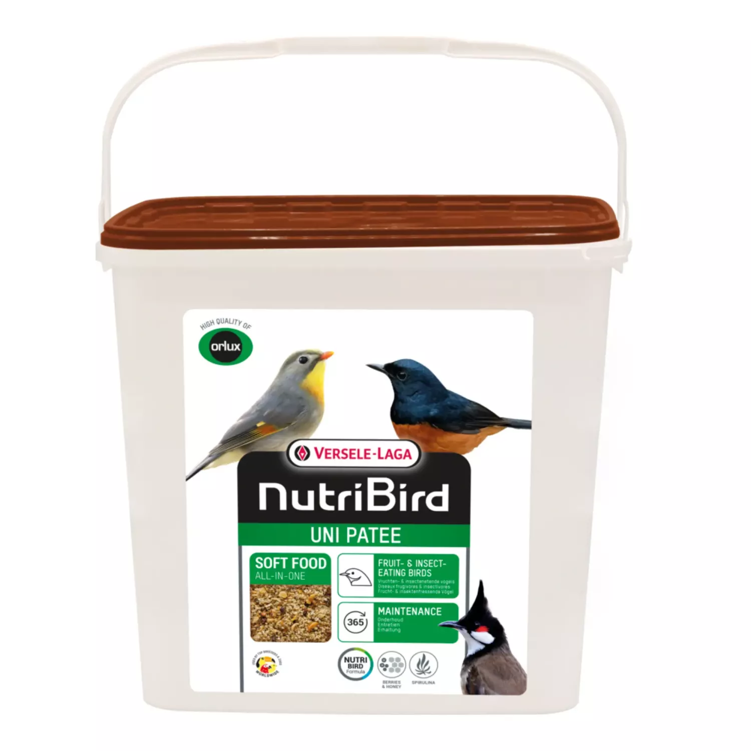 Nutribird Uni Patee är ett komplett och näringsrikt foder för små frukt- och insektsätande fåglar. Fodret är fuktat med 100 % ren och naturlig honung för bättre upptag och högre näringsvärde. Innehåller spirulina som bidrar med vitaminer, mineraler och aminosyror. Kan serveras som helfoder eller blandas med frukt eller insekter. Passar även som tillskottsfoder till många andra fågelarter, både tropiska och inhemska. Berikat med Opti Taste för optimal upptagning, Opti Feather för vacker fjäderdräkt och Opti Calcium för starka ben.